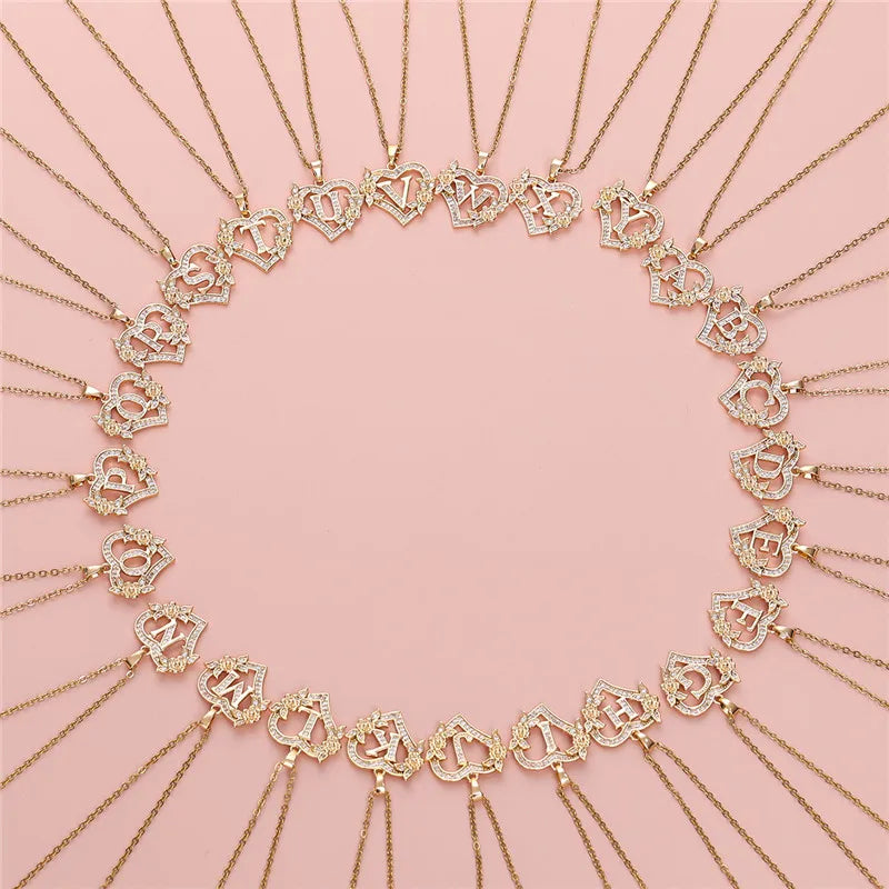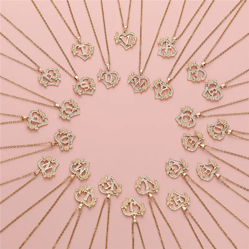 A-Z Letter Flower Heart Pendant Necklace