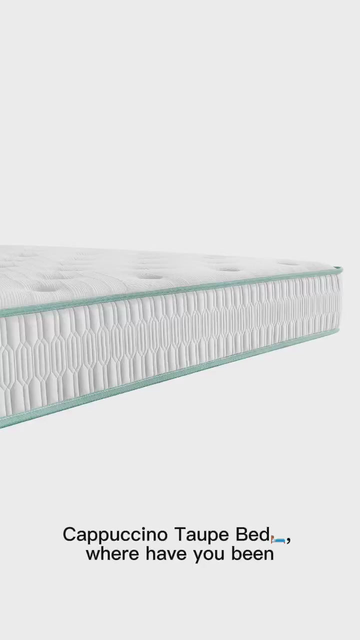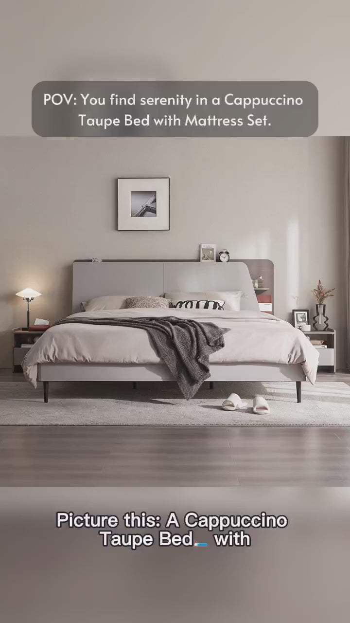Erleben Sie minimalistische Ästhetik und genießen Sie komfortablen Luxus mit dem Cappuccino Taupe Bett mit Matratzenset. Das elegante, hochbeinige Design wertet Ihr Zimmer auf. Die erhöhte Struktur erweitert den offenen Raum und Ihren visuellen Raum.