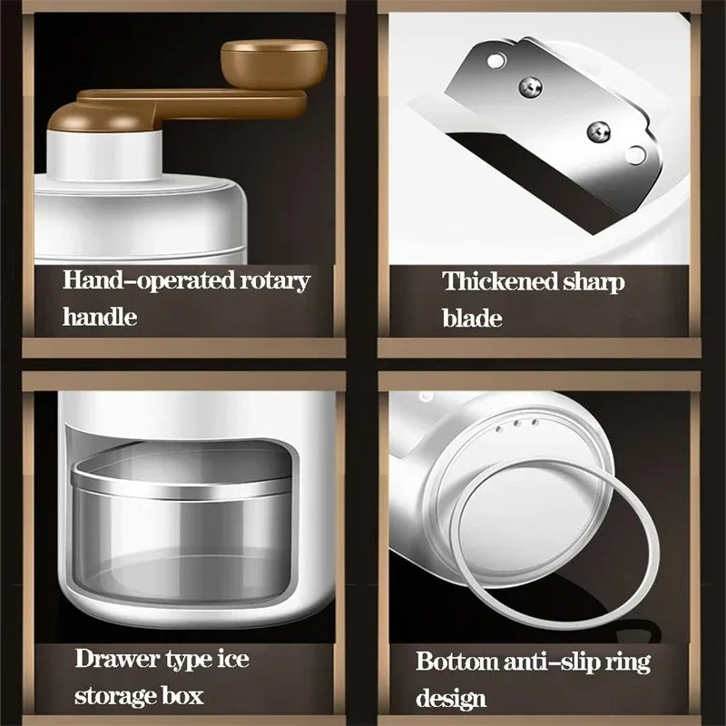 Lust auf eiskalte Leckereien auf Knopfdruck? Der Ice Crusher Slushie Maker ist Ihr Küchenhelfer für schnelle, erfrischende Slushies und geschabtes Eis – jederzeit und überall. Diese kompakte Maschine mit Handkurbel verwandelt normale Eiswürfel in Sekundenschnelle in geschmeidigen, fluffigen Schnee – ganz ohne Strom! Perfekt für selbstgemachte Slushies, Schneekegel und gefrorene Cocktails – eine praktische und witzige Ergänzung für Ihr Sommer-Setup oder Ihre Partypläne. Leicht zu reinigen, tragbar und für Kinder und Erwachsene gleichermaßen geeignet – mit jeder Drehung für kreative Abkühlung.