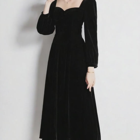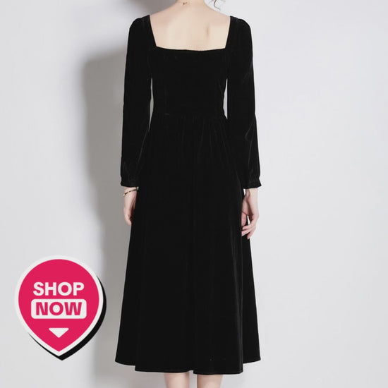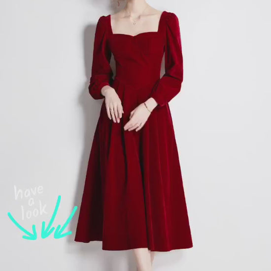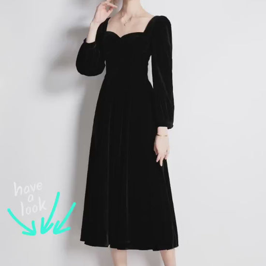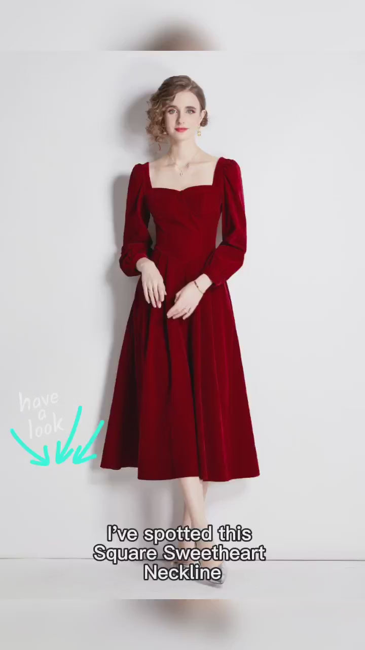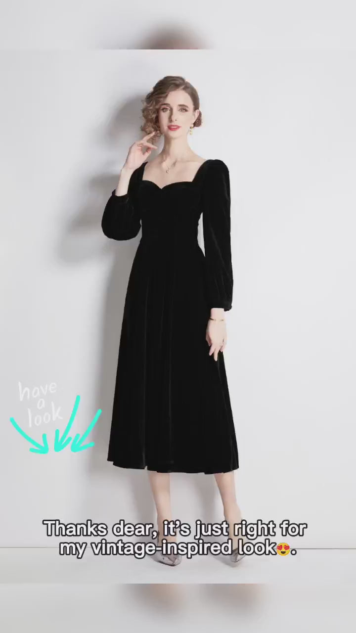 Das Vintage-Samtkleid mit herzförmigem Ausschnitt und quadratischem Ausschnitt ist ein Ausdruck zeitloser Schönheit und raffinierten Charmes und rückt klassische Romantik in den Mittelpunkt. Mit seinem schmeichelnden Ausschnitt und der edlen Samtstruktur fängt dieses Kleid die Anmut von Vintage-Silhouetten mit einem Hauch moderner Weiblichkeit ein – perfekt für Candlelight Dinner, elegante Abendveranstaltungen oder Winterhochzeiten.