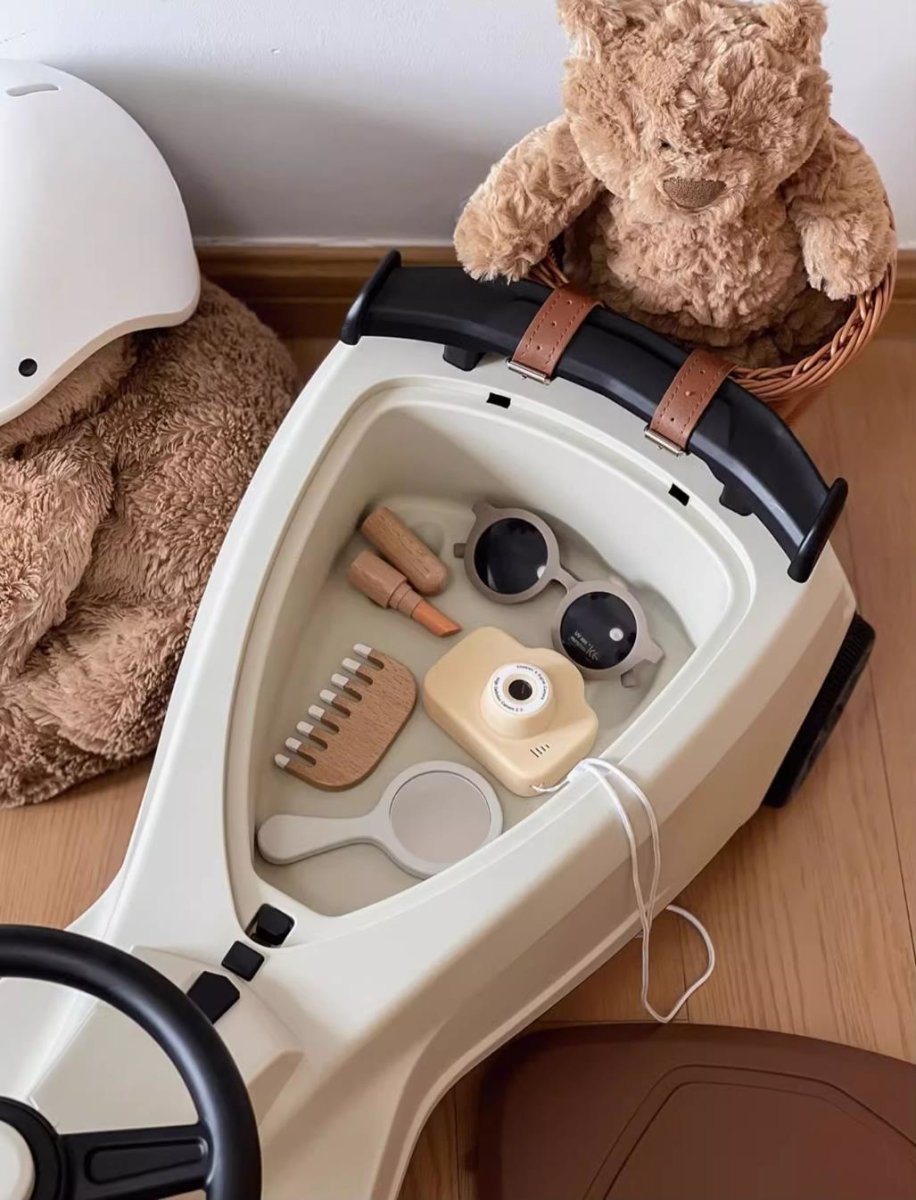 - Mehr Details, mehr Sorgfalt – Radnabendesign im Rennwagen-Stil, Gummiräder hinzugefügt; geräuschlose Geräuschreduzierung für ein cooleres Erlebnis; verdicktes, rutschfestes, mattiertes Fußpedal für stabiles Bremsen mit kleinen Füßen; einzigartiger Ton- und Lichtschalter, freier Wechsel zwischen Chinesisch und Englisch.