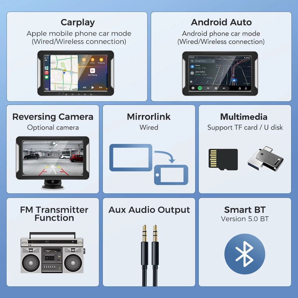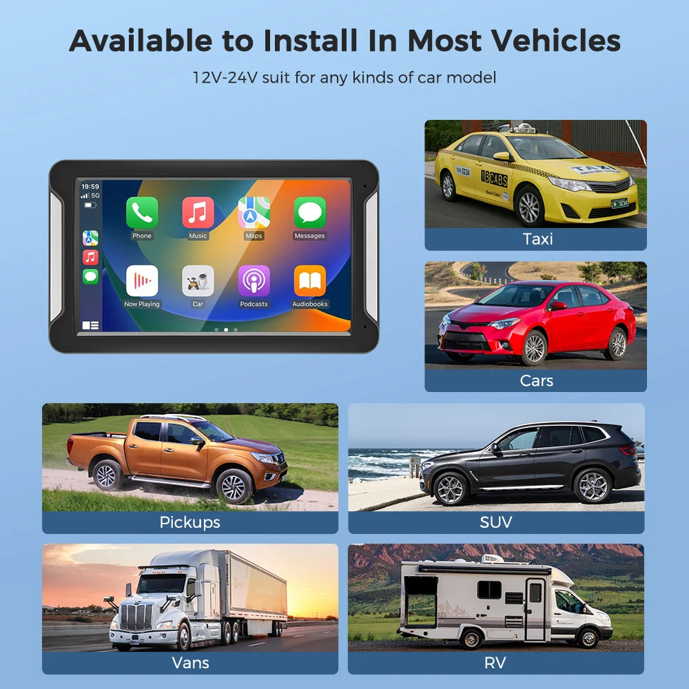 Revamp your driving experience instantly with this innovative Car Play System, designed to transform your vehicle from outdated to state-of-the-art in seconds. Just plug it into your car's cigarette port, compatible with any vehicle, and watch as your car's interior goes from mundane to magnificent. It easily sticks to your dashboard or windscreen, offering a seamless connection to your phone via Bluetooth or AirPlay. This system isn't just about aesthetics; it features a touchscreen display, a built-in microphone for hands-free communication, and, as a special bonus, a free reversing camera. Unlike expensive garage installations, this user-friendly system installs quickly and effortlessly, saving you both time and money while elevating your driving experience.