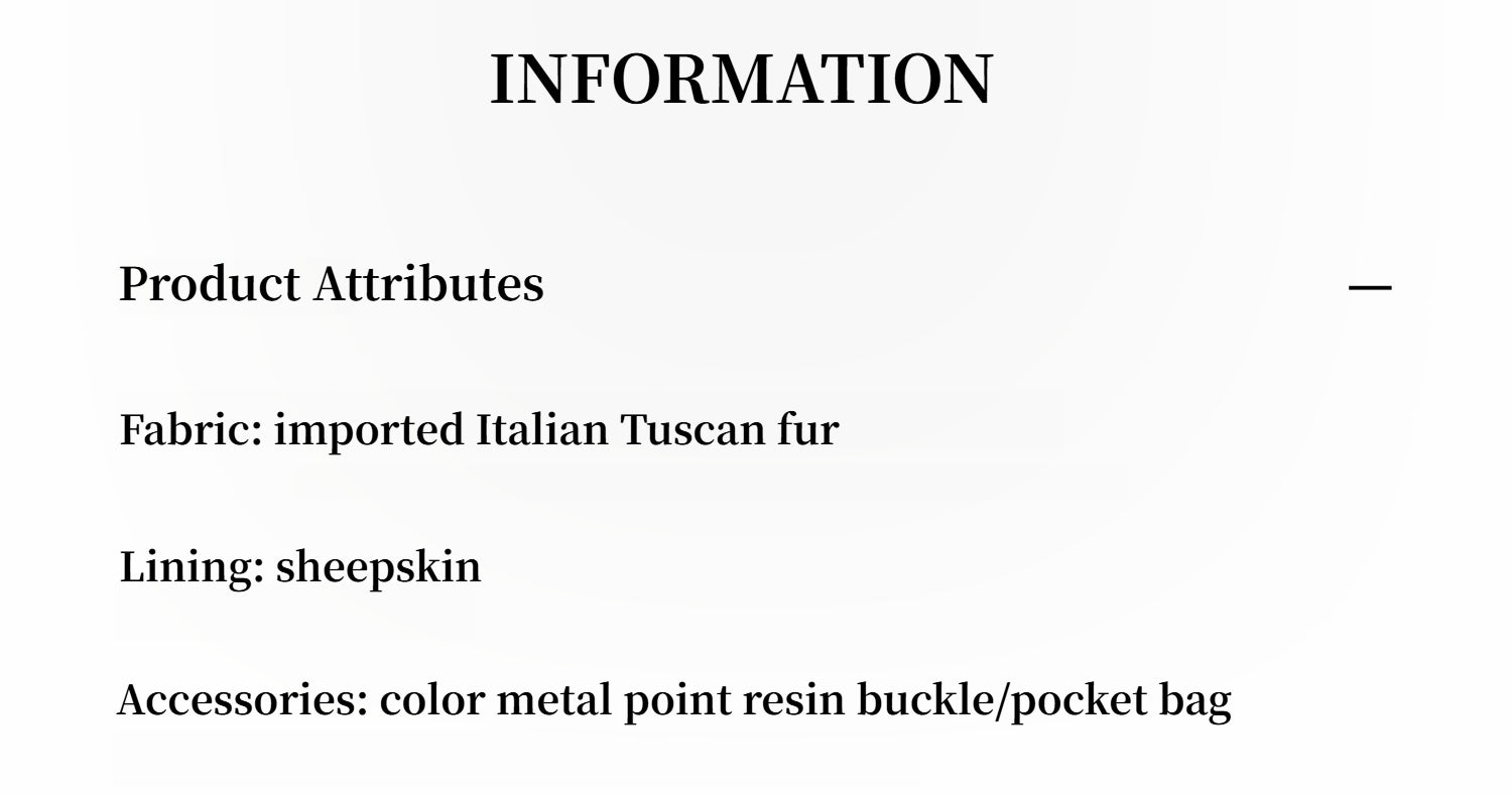 Selected original ecological Toscana fur from Italy, with a glossy and soft woolen hue. Combined with a custom long lapel and loose fit, it creates a light and airy urban fur coat, meeting the styling needs of young fashionistas and ensuring diverse autumn and winter OOTD looks every day.