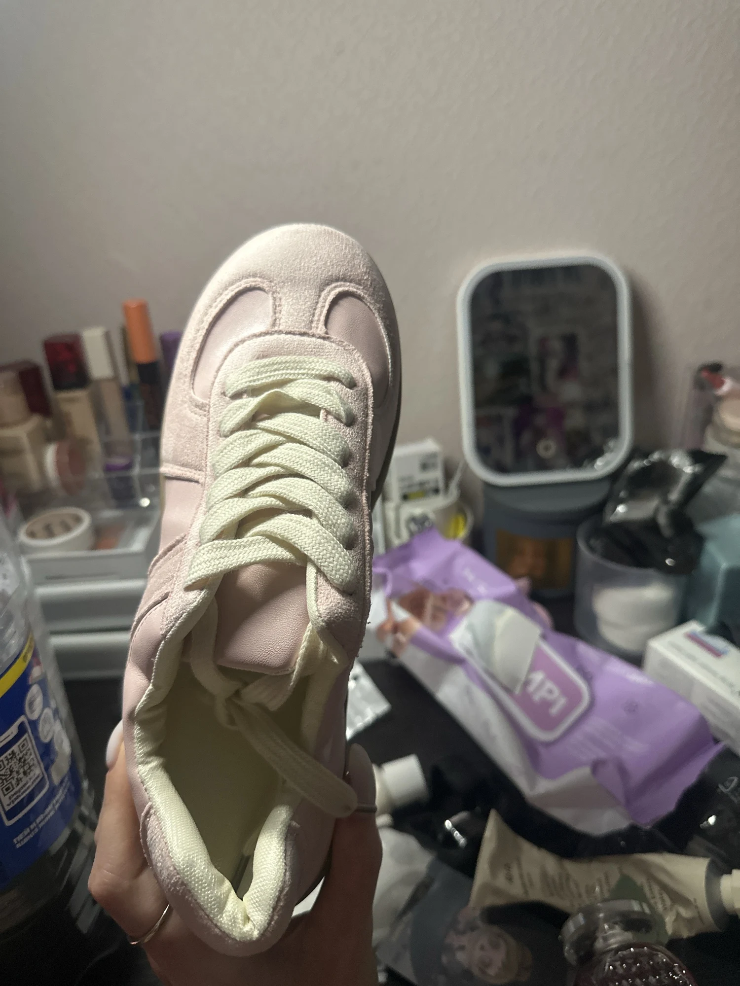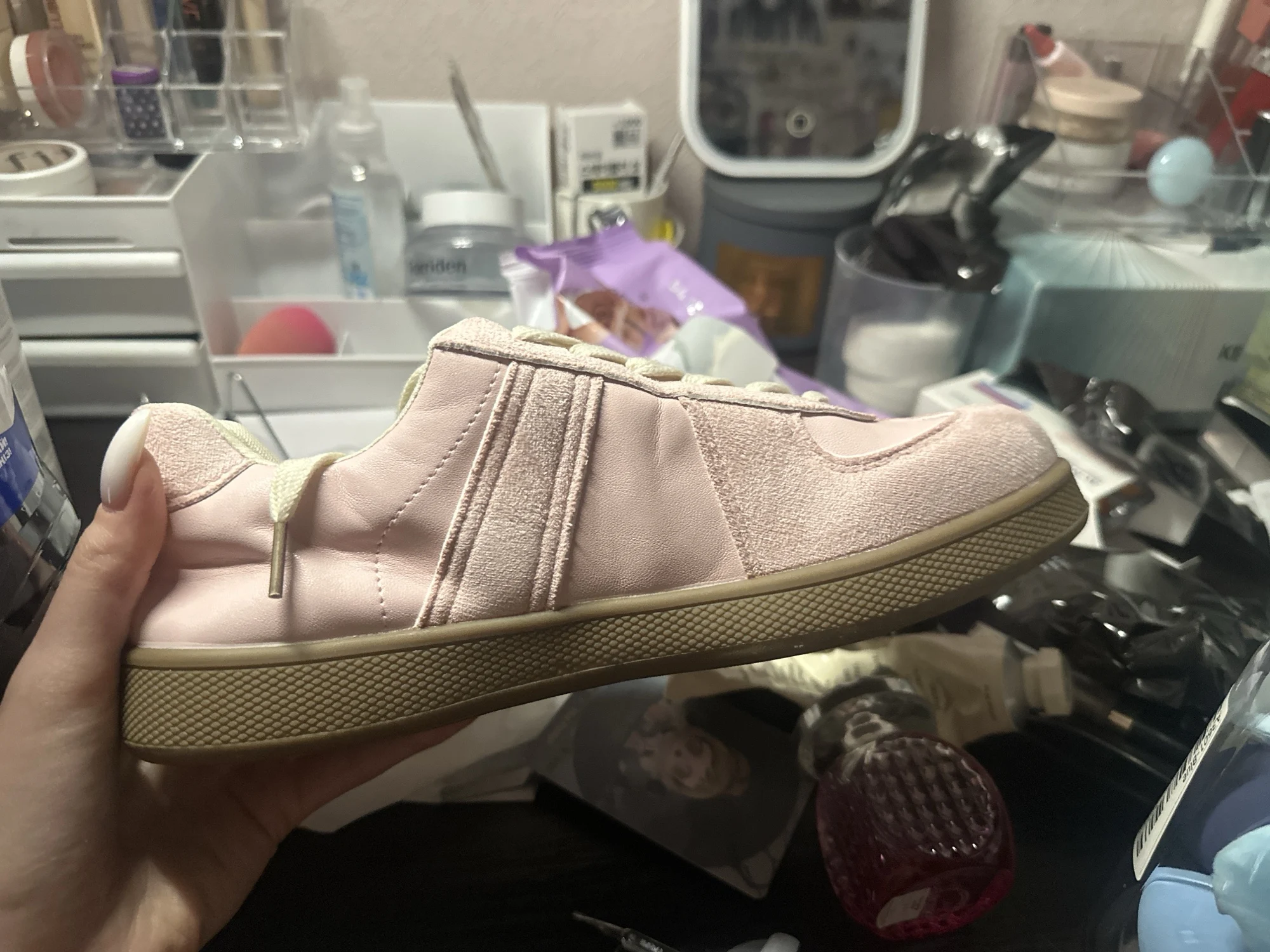 Soft, look cool.. color in real life is a delicate pink, cuter than in the photo.. there's a lot of glue along the entire edge and its strong smell.. hope it will be checked.. fits perfectly on a 24.5 size foot.. and slightly uneven stitching on the left one, but it's not particularly noticeable.
